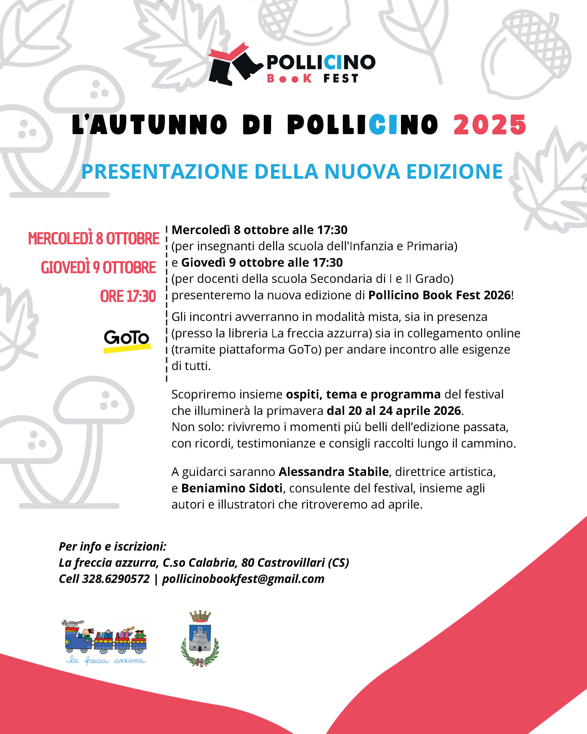 Pollicino torna a seminare le sue briciole lungo il sentiero che conduce alla terza edizione di Pollicino Book Fest, il festival della lettura che illuminerà la primavera di Castrovillari dal 20 al 24 aprile 2026. Prima di arrivare a destinazione, c’è una tappa di “avvicinamento” irrinunciabile: L’Autunno di Pollicino 2025, due incontri di presentazione pensati per chi accompagna ogni giorno bambini e ragazzi nel mondo dei libri.
